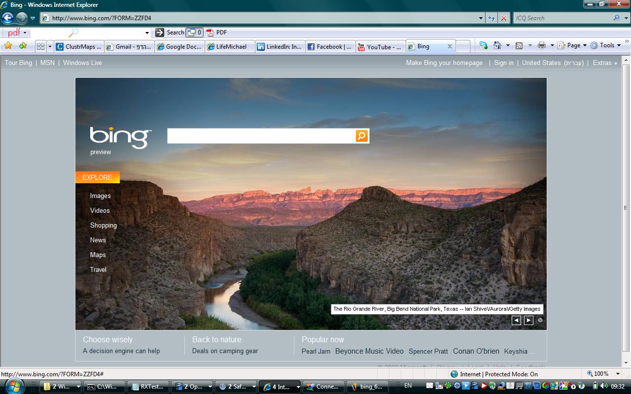 Moving forward and continue with my experience using bing I found few more nice features one can expect google to catch up and add to its search engine. One of them is the ability to get a snapshot from each one of the pages their URL results are shown on the results page (just by placing the mouse above the URL address).